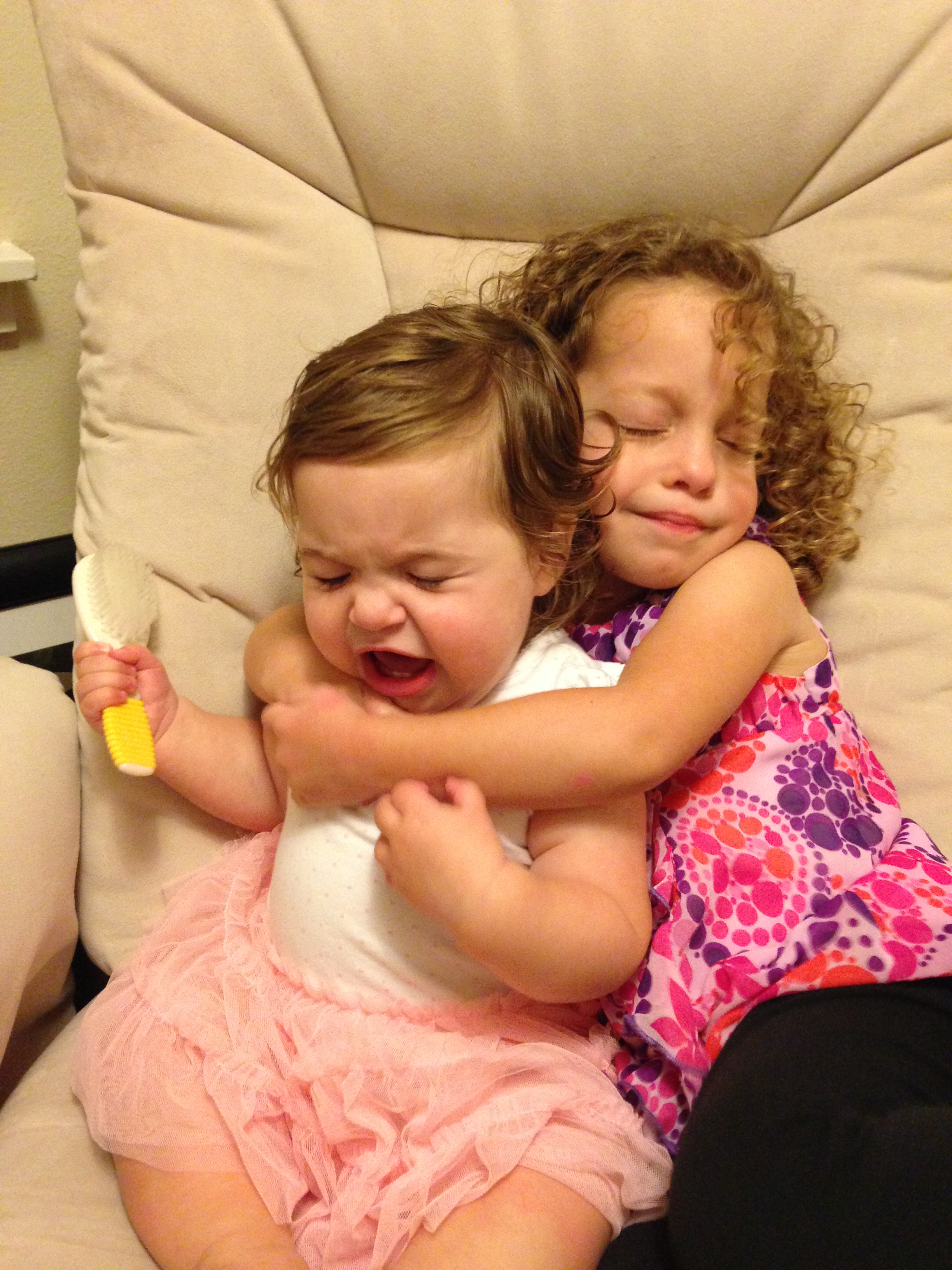 With two hands full and a toddler hysterically crying, I sat down on the front step, dropped the two overfilled nap bags and put down the baby to give her older sister a little TLC. As I got down on their level, the baby saw the cup of crackers her sister was holding and reached for one, only to be met with resistance from her crying sibling. This sent the younger one into tears too. As I sat on the step of the now closed daycare, alone, exhausted and mildly aware of the milk, raw chicken and other groceries sitting in the trunk of the car, I looked into the two faces of my babies, who were looking back at me with mouths wide open, heads tipped back, tears streaming down their faces. In a moment of total helplessness, and with very real awareness of their dependence on me, I let out a little chuckle at the ridiculousness of the scene before giving them a dual hug and looking around for where the social scientist was hiding, waiting to analyze my every move.